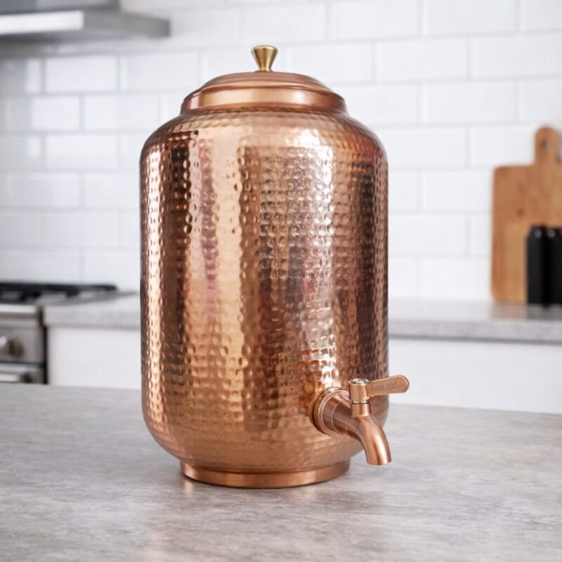 Elevate your daily hydration with this handcrafted 8-liter hammered pure copper water dispenser — a perfect blend of traditional wellness and elegant craftsmanship. Designed for both functionality and beauty, this dispenser enhances your space while supporting a healthier lifestyle.