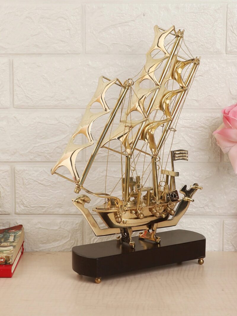 This is an intricately handcrafted decorative piece. Made in brass and given an antique looks, its beauty is because of the fine details given by our craftsmen. We at Exim DΓ©cor aim to provide the best of art and home decorative items. The ship model is made in brass which rests upon a sturdy wooden base.